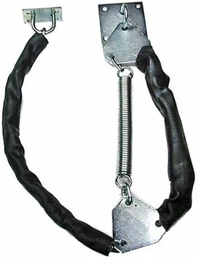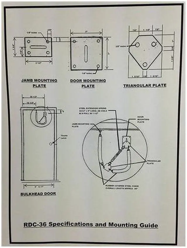 Progressive, RDC-36, Heavy Duty Galvanized Steel Door Safety Chain and Spring for Exterior Doors for 34" - 36" Doors. Galvanized steel butt welded chain. Para-rubber covering. Galvanized extension spring, approximately 8" long. Designed for Exterior Doors to Withstand Strong Winds. 3" X 3" Galvanized Plate to Install on Door with Included Thru Bolts. 1-3/4" X 2-1/2" Galvanized Plate to Install on Door Frame with Included Screws. Mounting and Fastening Hardware Includes Self Drilling Screws for Steel Door Frames. Easy to Follow Instructions.
