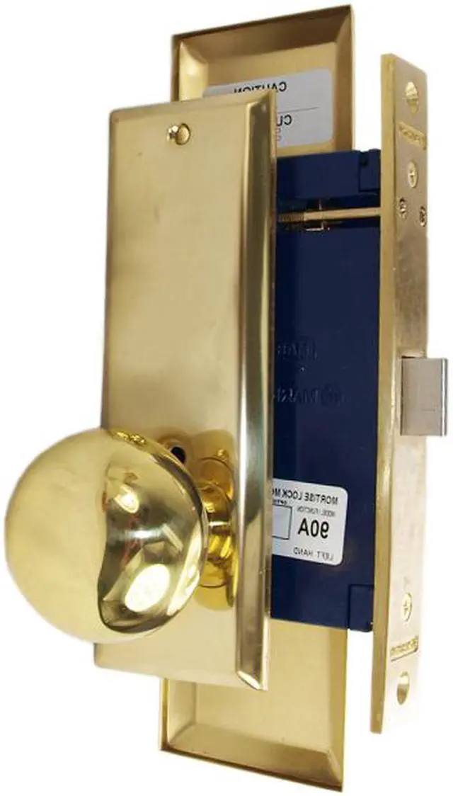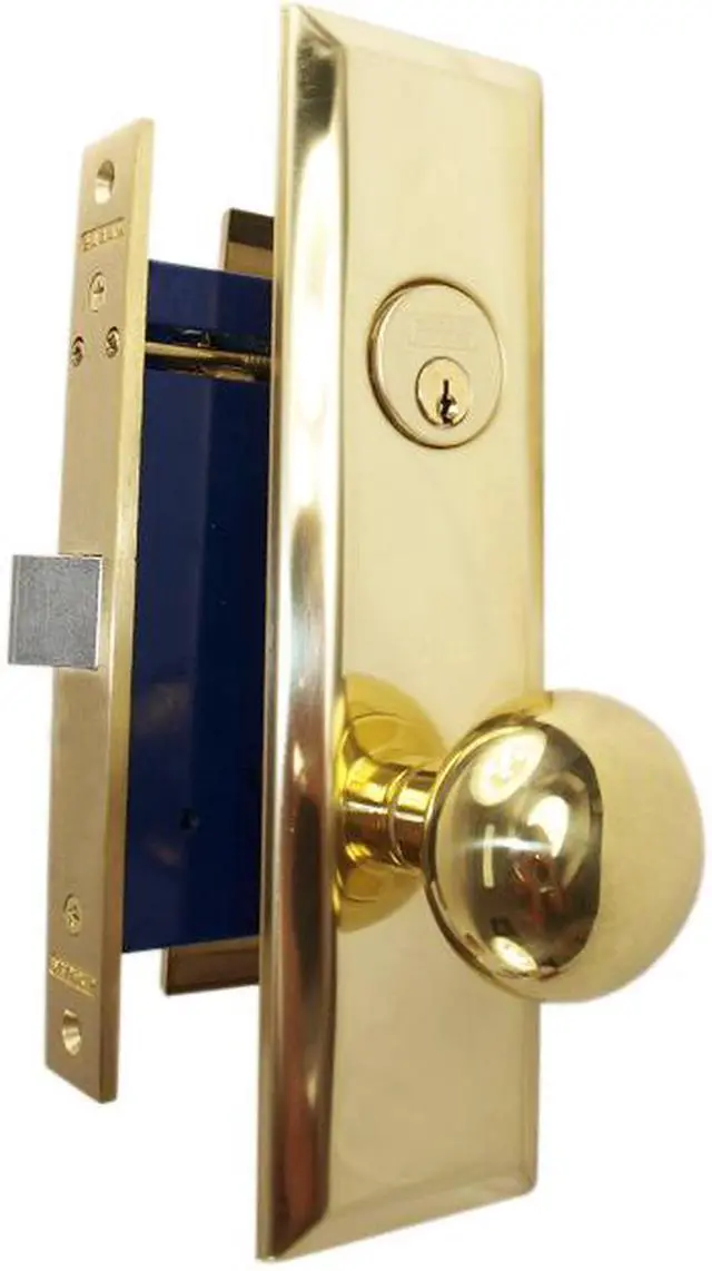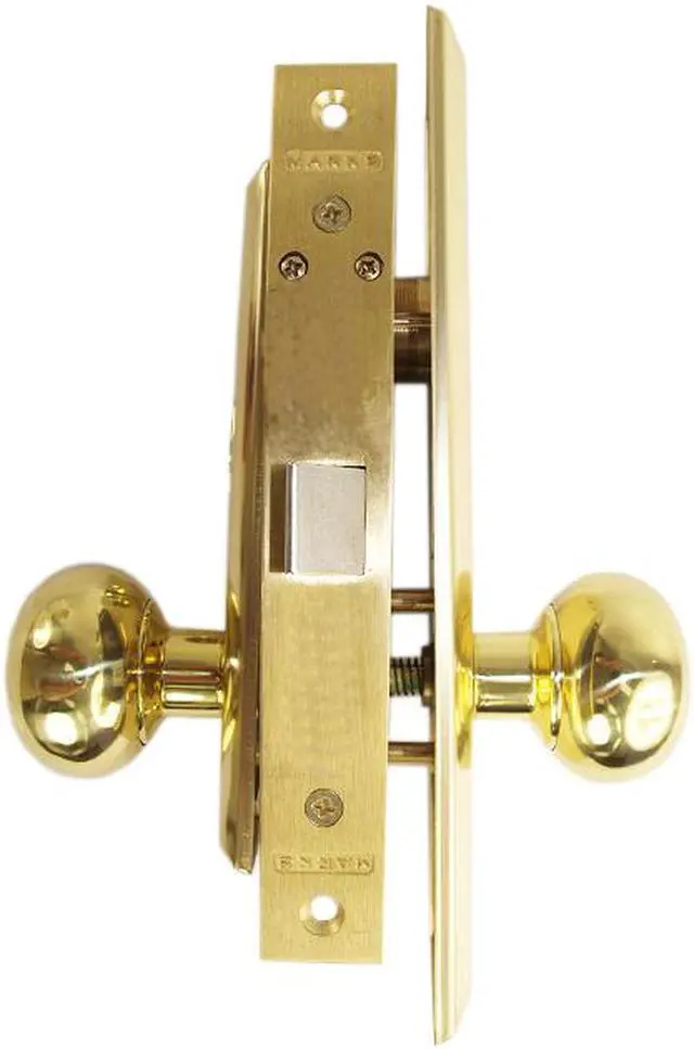 Marks New Yorker 9NY10DW/3, Polished Brass Right Hand Mortise Lock Knob Vestibule Function Always Locked Storeroom Lockset Screwless Knobs Thru Bolted Lock Set. 2-1/2" Backset, Latch Only (No Bolt and Rocker), Front