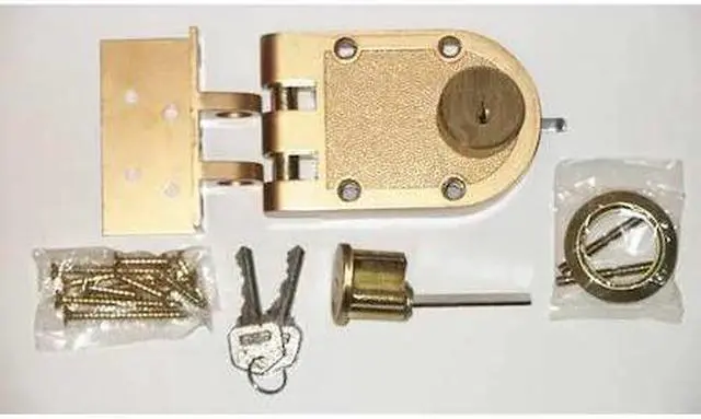 Rim Lock, Jimmyproof Deadlock, Brass-Plated Finish, Material Zinc Chromated Heavy Gauge Steel, For Door Thickness 1-3/8 in to 2-1/4 in, Backset 2 1/2 in, Double Cylinder, Keying Keyed Different, Keyway Type KW1, Pins 5, Number of Keys 2. This item has been restricted from sale in the following state (s): []