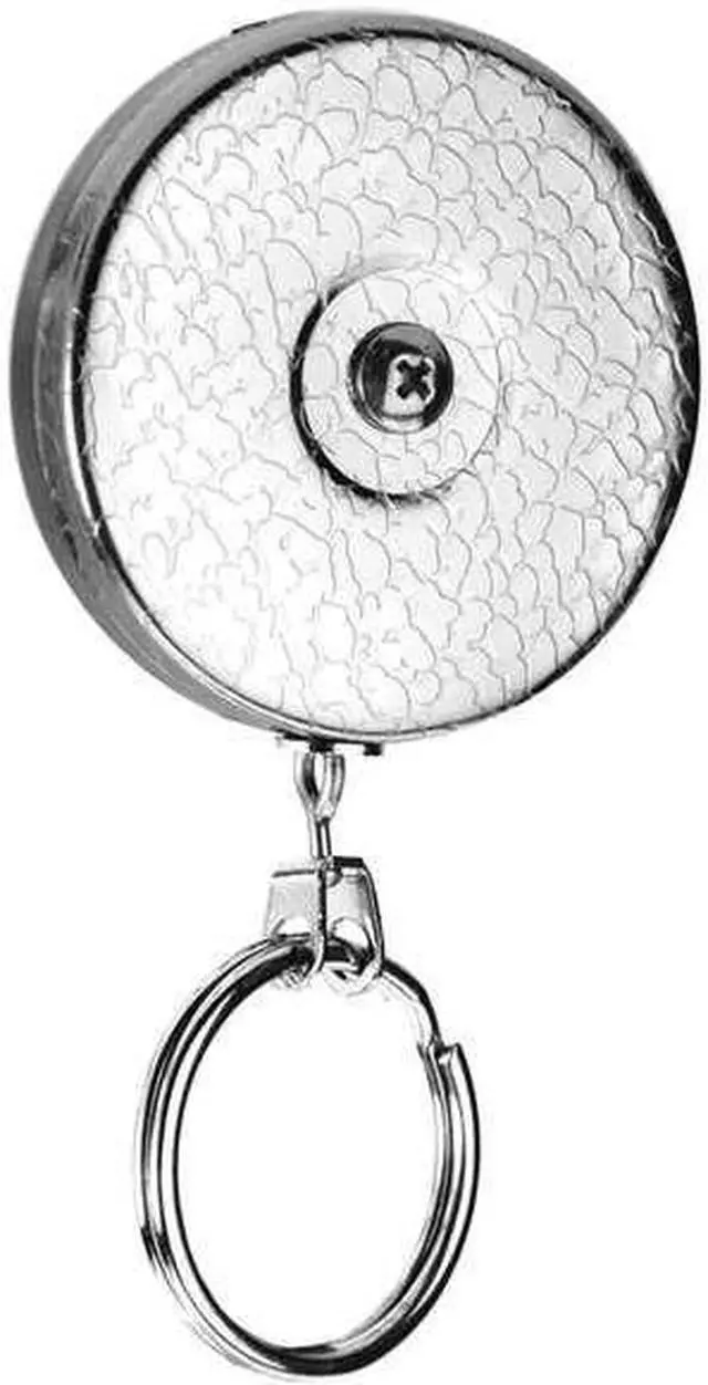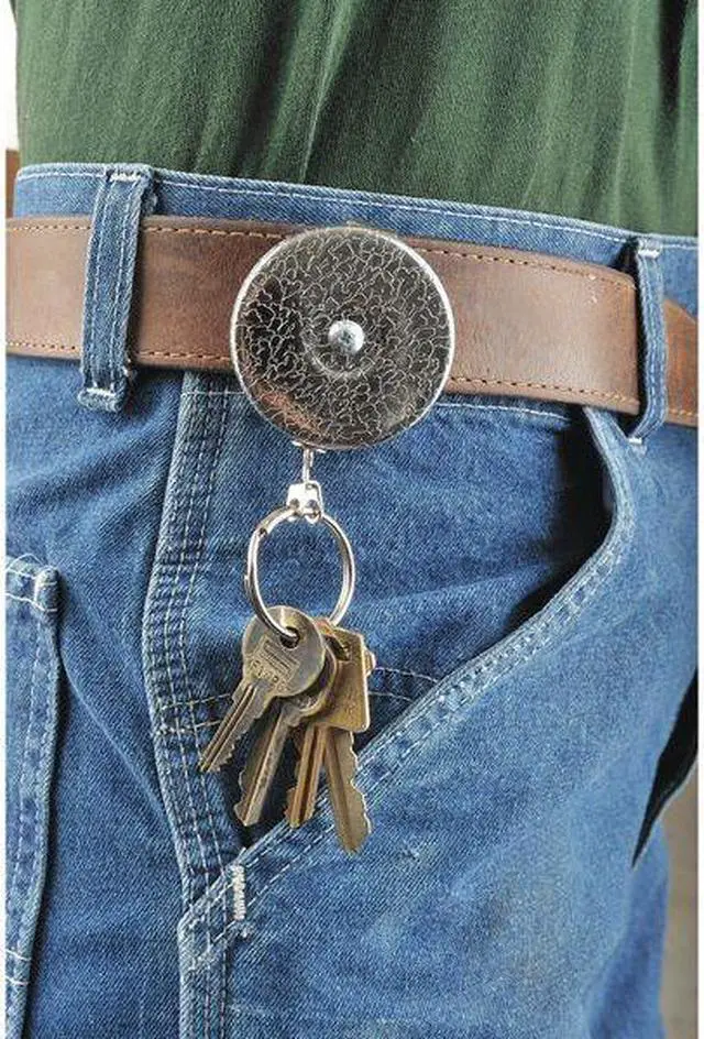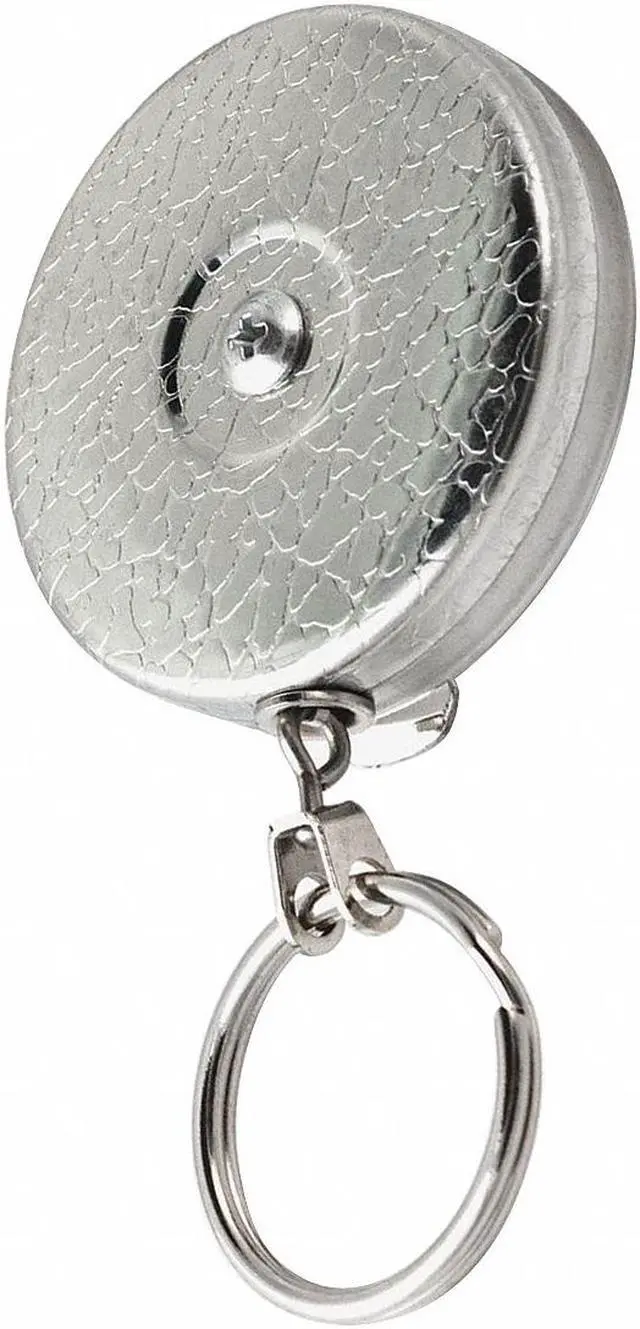 Key Reel, Stainless Steel Chain, Extended Length 24 In, 8-10 Oz Retraction Force, 2 In Case Size, Split Ring Type, 1 1/8 In Ring Size, Fits Belts Up To 1 3/4 In, Belt Clip Attachment Type, Standard Clip Type, Chrome, Silver, Chrome Texture Finish, For Holding Keys, Includes Split Ring. This item has been restricted from sale in the following state (s): []