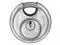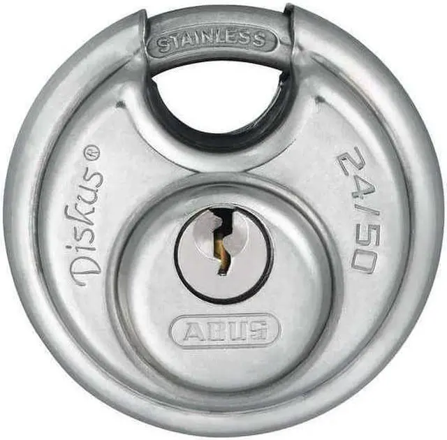 Padlock, Shackle Dia. 1/4 in, Shackle Height 3/8 in, Shackle Width 1/2 in, Shackle Material Stainless Steel, Body Height 1 31/32 in, Body Width 2 1/64 in, Body Thickness 1 in, Body Material Stainless Steel, Number of Bumpers 0, Number of Pins 4 Pin, Key Type Alike, Opens with Key No. 113, Body Color Silver, Body Dia. 2 in, Body Finish Plastic Coated, Weather Resistant Yes, High Security Yes, Interchangeable Core No, Padlock Body Shape Disc, Rekeyable No, Shackle Type Partially Hidden Shackle.