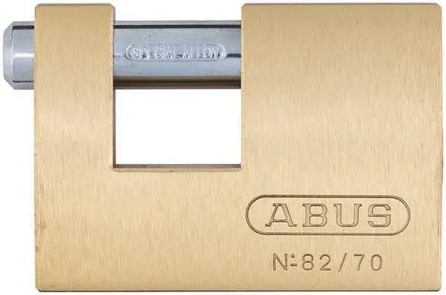 Padlock, Shackle Dia. 15/32 in, Shackle Height 1/2 in, Shackle Width 7/8 in, Shackle Material Steel, Body Height 1 31/32 in, Body Width 2 25/32 in, Body Thickness 25/32 in, Body Material Brass, Number of Bumpers 0, Number of Pins 5 Pin, Key Type Alike, Opens with Key No. 8511, Weather Resistant Yes, Interchangeable Core No, Rekeyable No, Shackle Type Shutter Shackle. This item has been restricted from sale in the following state (s): []