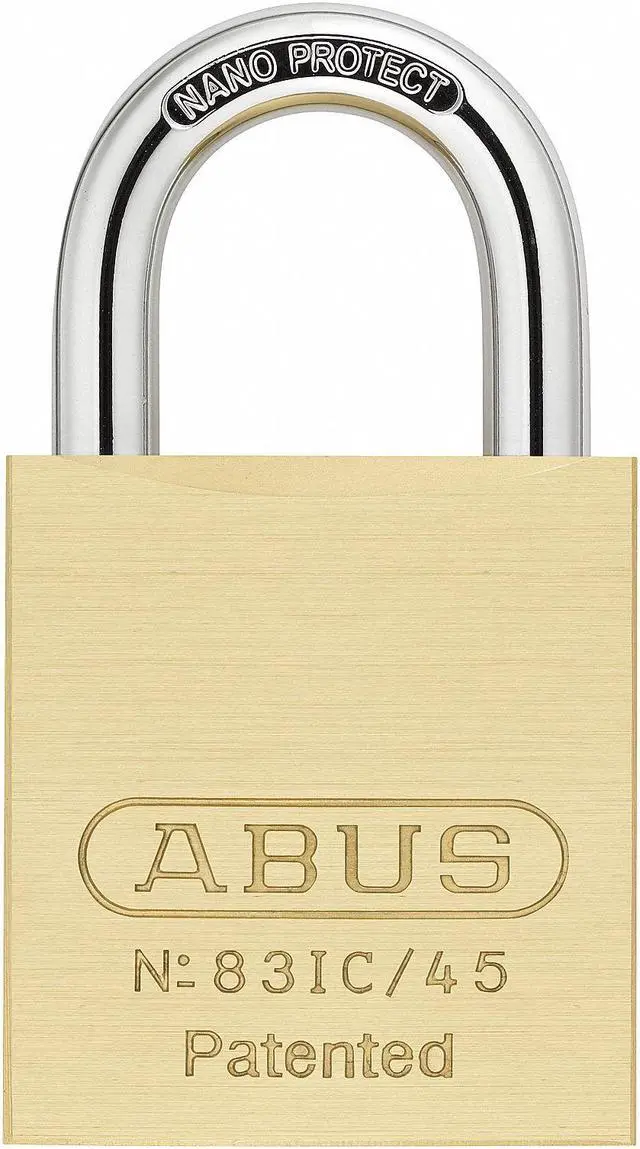 Padlock, Shackle Dia. 5/16 in, Shackle Height 1 in, Shackle Width 1 in, Shackle Material Steel, Body Height 2 1/64 in, Body Width 1 27/32 in, Body Thickness 25/32 in, Body Material Brass, Number of Bumpers 0, Number of Pins 5 Pin, 7 Pin, Key Type Coreless, Body Color Brass, Keyway Type Interchangeable Core, Weather Resistant Yes, High Security Yes, Interchangeable Core Yes, Non Removable Key Yes, Padlock Body Shape Rectangular, Rekeyable Yes, Shackle Type Standard Shackle