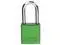 Lockout Padlock, Body Color Green, Body Height 1 1/2 in, Body Material Aluminum, Body Thickness 3/4 in, Body Width 1 9/16 in, Header None/No Header, Horizontal Shackle Clearance 3/4 in, Key Type Keyed Different, Non-Removable Key Yes, Resistance Properties Corrosion Resistant, Heat Resistant, Shackle Diameter 1/4 in, Shackle Height 1 1/2 in, Shackle Material Hardened Steel, Shackle Type Open, Vertical Shackle Clearance 1 9/16 in, Width Across Shackle 13/16 in, Body Material Coating Anodized. This item has been restricted from sale in the following state (s): []