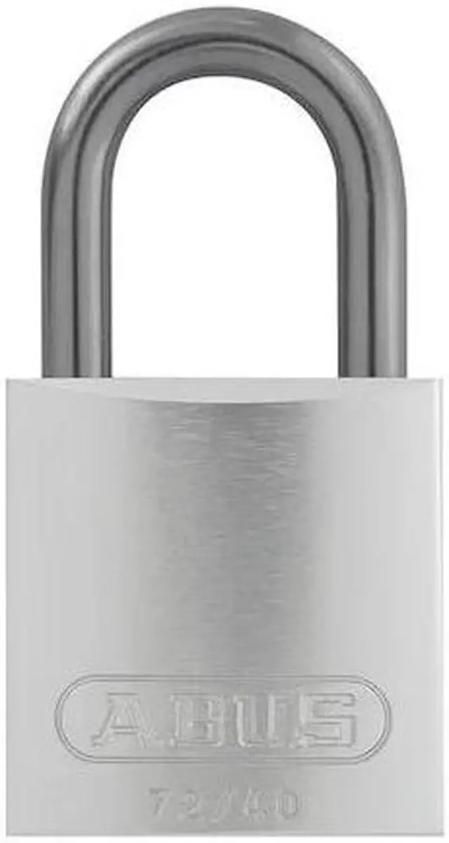 Lockout Padlock, Body Color Silver, Body Height 1 1/2 in, Body Material Aluminum, Body Thickness 11/16 in, Body Width 1 1/2 in, Header None/No Header, Horizontal Shackle Clearance 3/4 in, Key Type Keyed Alike, Non-Removable Key Yes, Resistance Properties Corrosion Resistant, Heat Resistant, Shackle Diameter 1/4 in, Shackle Height 1 in, Shackle Material Hardened Steel, Shackle Type Open, Vertical Shackle Clearance 1 1/16 in, Width Across Shackle 13/16 in, Body Material Coating Anodized. This item has been restricted from sale in the following state (s): []