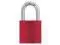 Lockout Padlock, Body Color Red, Body Height 1 1/2 in, Body Material Aluminum, Body Thickness 11/16 in, Body Width 1 1/2 in, Header None/No Header, Horizontal Shackle Clearance 3/4 in, Key Type Keyed Alike, Non-Removable Key Yes, Resistance Properties Corrosion Resistant, Heat Resistant, Shackle Diameter 1/4 in, Shackle Height 1 in, Shackle Material Hardened Steel, Shackle Type Open, Vertical Shackle Clearance 1 1/16 in, Width Across Shackle 13/16 in, Body Material Coating Anodized. This item has been restricted from sale in the following state (s): []