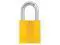 Lockout Padlock, Body Color Yellow, Body Height 1 1/2 in, Body Material Aluminum, Body Thickness 11/16 in, Body Width 1 1/2 in, Header None/No Header, Horizontal Shackle Clearance 3/4 in, Key Type Keyed Alike, Non-Removable Key Yes, Resistance Properties Corrosion Resistant, Heat Resistant, Shackle Diameter 1/4 in, Shackle Height 1 in, Shackle Material Hardened Steel, Shackle Type Open, Vertical Shackle Clearance 1 1/16 in, Width Across Shackle 13/16 in, Body Material Coating Anodized. This item has been restricted from sale in the following state (s): []