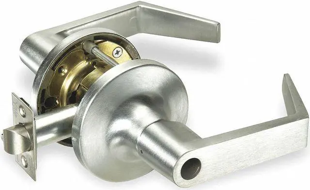 Lever Lockset, Medium Duty, Commercial, Right Angle Style, Dull Chrome Less Cylinder Finish, Function Entrance, Grade 2, Material Heavy Gauge Steel, 1-1/4 x 4-7/8 In. Strike, Required Door Thickness 1 3/8 to 1 3/4 In., Standards ANSI 117.1 Specification, UL Listed, Package Quantity 1. This item has been restricted from sale in the following state (s): []
