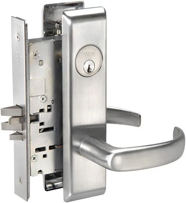 California Proposition 65: This product contains a chemical known to the State of California to cause birth defects or other reproductive harm. Mortise Lockset w/Escutcheon, Heavy Duty, Commercial, Pacific Beach (Curved) Style, Satin Chrome (626) Finish, Function Storeroom, Grade 1, Material Brass, Stainless Steel, Zinc, For Door Thickness 1 3/4 to 3 3/4 In., Backset 2 3/4 In., Front Size Dimension 8 x 1 1/4 In., Keying Different, Number of Keys 2, Pins 6, 1 1/4 x 4 7/8 in ANSI Strike, Required Door Thickness 1 3/4, Cylinder Included, Fire Rated 3 Hours, Case Material Wrought Steel, Zinc Dichromate, Accepts Standard Mortise Cylinders. This item has been restricted from sale in the following state (s): []