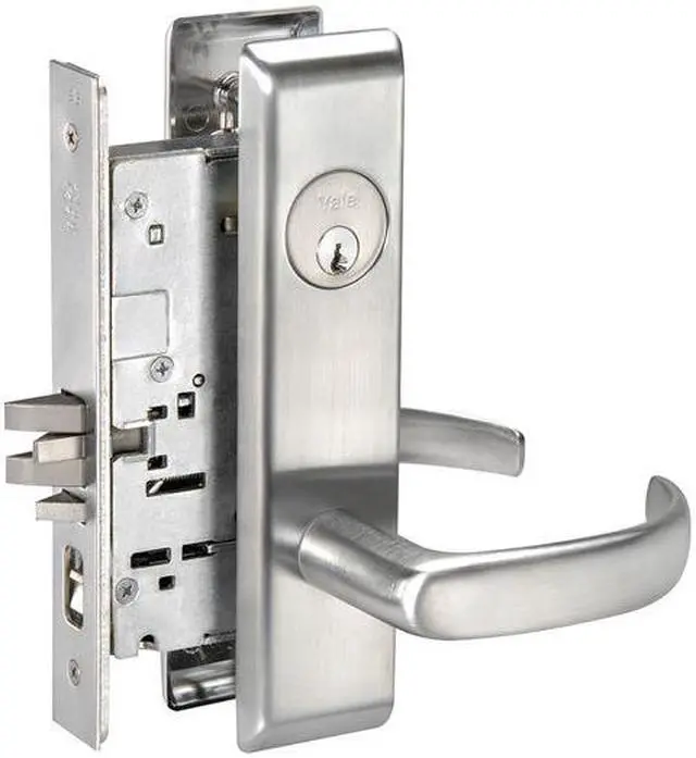 California Proposition 65: This product contains a chemical known to the State of California to cause birth defects or other reproductive harm. Mortise Lockset w/Escutcheon, Heavy Duty, Commercial, Pacific Beach (Curved) Style, Satin Chrome (626) Finish, Function Entrance /Office, Grade 1, Material Brass, Stainless Steel, Zinc, For Door Thickness 1 3/4 to 3 3/4 In., Backset 2 3/4 In., Front Size Dimension 8 x 1 1/4 In., Keying Different, Number of Keys 2, Pins 6, 1 1/4 x 4 7/8 in ANSI Strike, Required Door Thickness 1 3/4, Cylinder Included, Fire Rated 3 Hours, Case Material Wrought Steel, Zinc Dichromate. This item has been restricted from sale in the following state (s): []