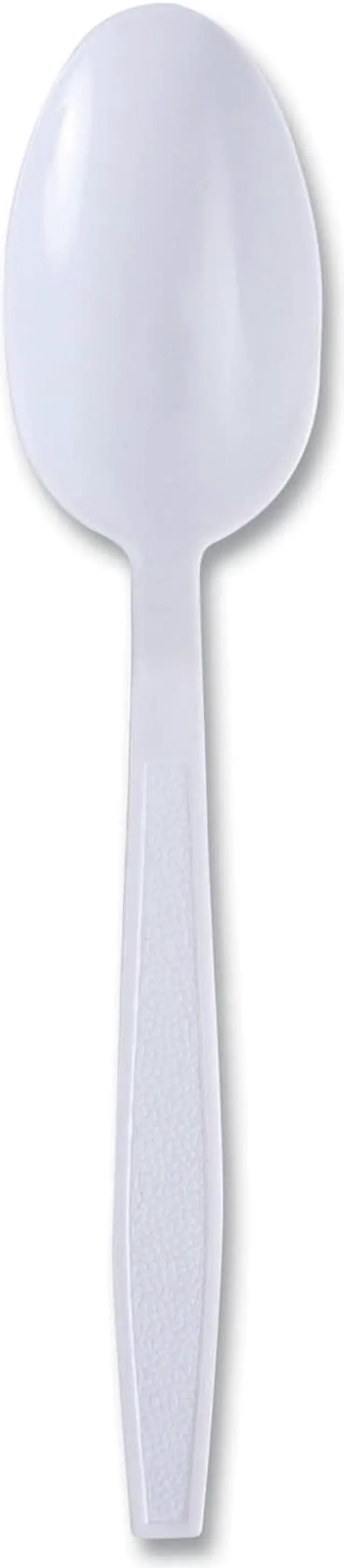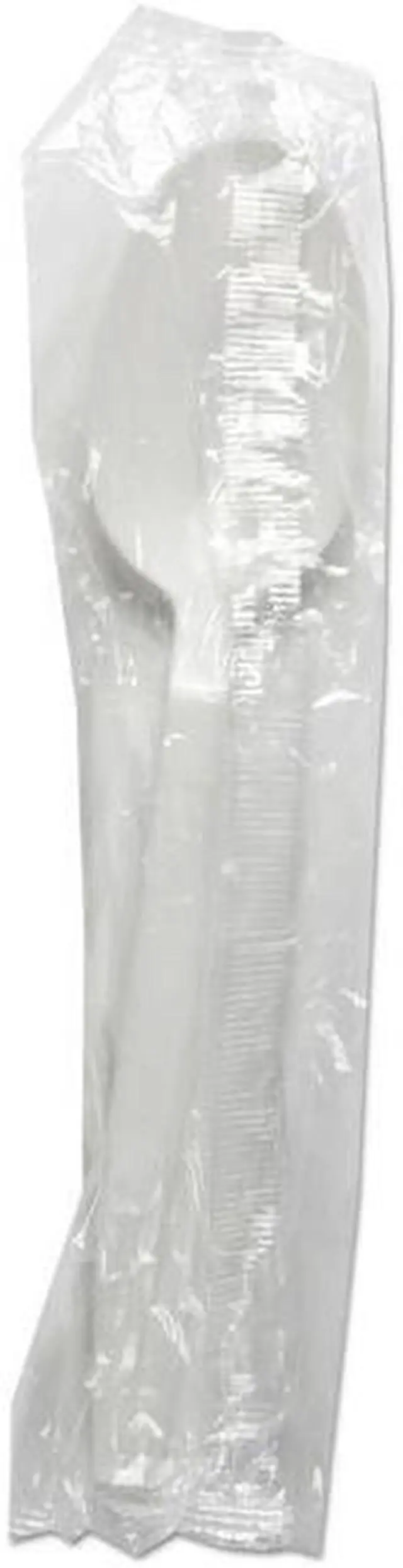 A great option for virtually any dining environment, heavyweight, wrapped cutlery items offer quick event set-up or packing for to-go meals. Individually packaged for convenience and to ensure utensils remain sanitary, even after handling. The high-quality utensils have the versatility to be used with nearly any cuisine, making them an ideal fit for takeout, concession stands, cafeterias, offices, and special events. Utensils Type: Teaspoon; Material(s): Polypropylene; Color(s): White; Grade: Heavyweight.