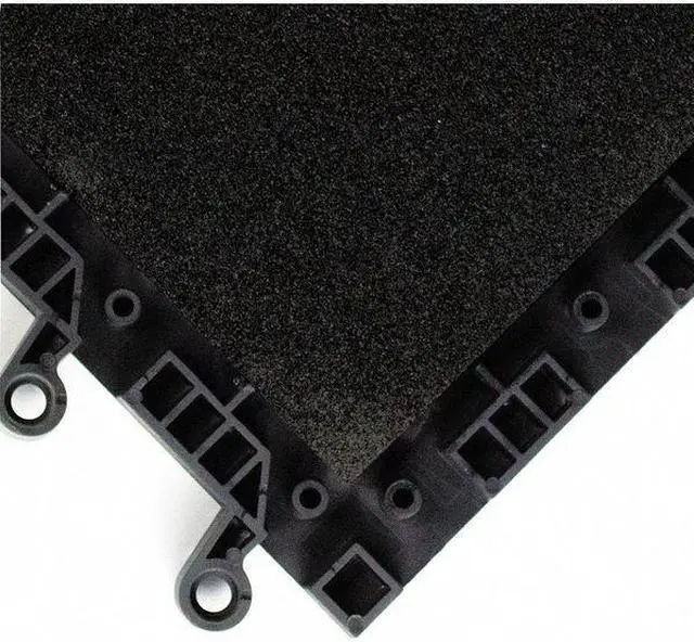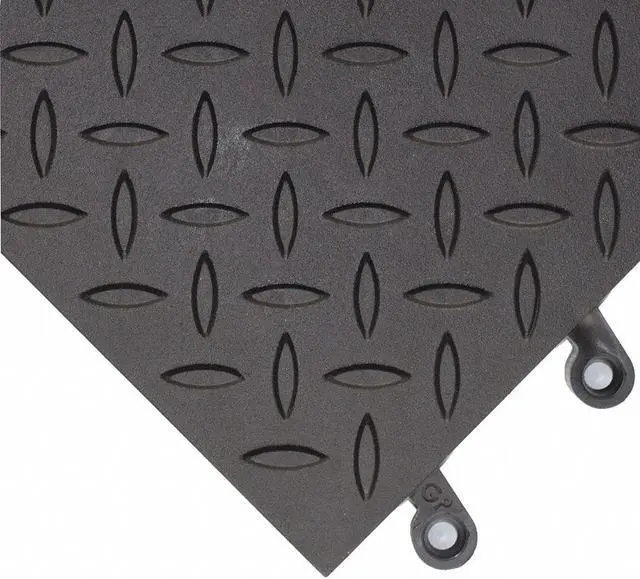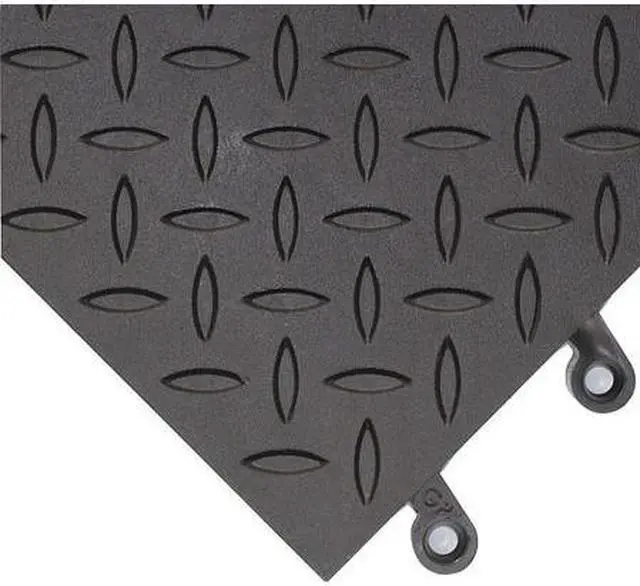 Interlocking Mat Item Interlocking Antifatigue Mat, Mat Length 18 in, Mat Width 18 in, Mat Thickness 7/8 in, Matting Series Compatibility ErgoDeck (TM) Mats, Mat Surface Pattern Diamond, Mat Color Black, Interlocking Mat Edges (1) Interlocking, (1) Straight, (2) Beveled, Mat Section End Section, Male/Female, Backing Material Nitricell,