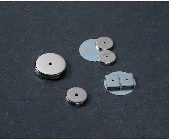 Encased Round Base Magnet, Material Ceramic, Max. Pull 65 lb, Thickness 0.36 in, Diameter 2 2/3 in, Casing Material Nickel Plating, Hole Dia. 1/4 in. This item has been restricted from sale in the following state (s): []
