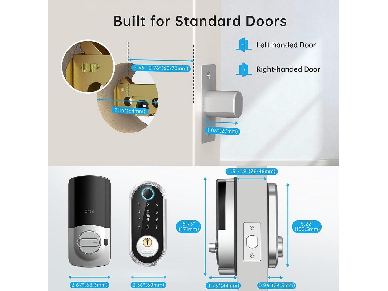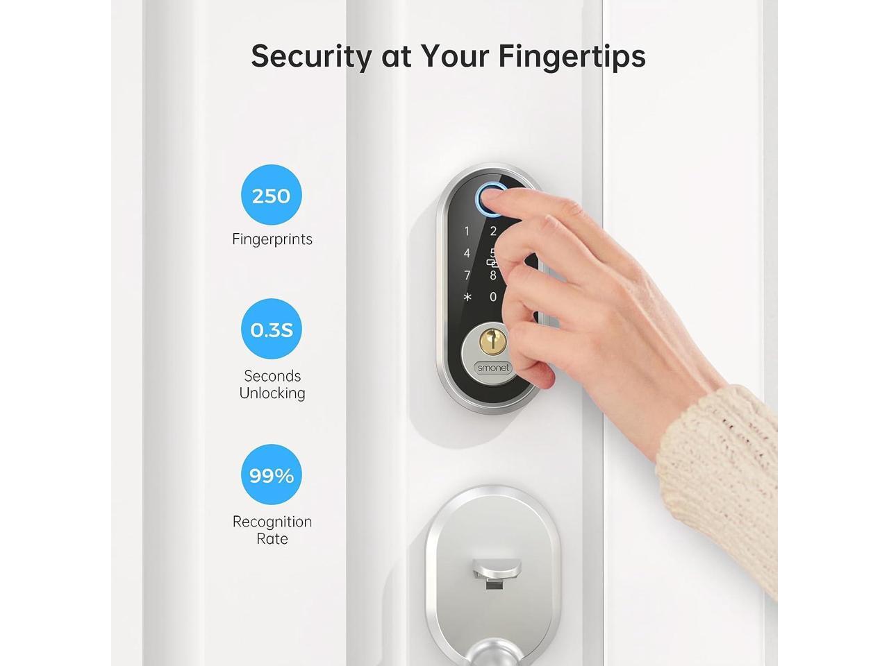 - Keyless Entry Door Lock- SMONET Smart Lock can recognize your fingerprint in just 0.5 seconds, and unlock your door in 1 second, faster than fumbling for your keys. Compatible with Alexa or Google Assistant (Requires a wifi gateway to hook it up to Internet, sold separately)