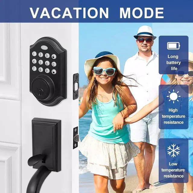 Unique Holiday ModeThe door latch can be in holiday mode. In this mode, the consumption will be minimized and the battery life will be longer to ensure that you can still open the lock when you come back from vacation.