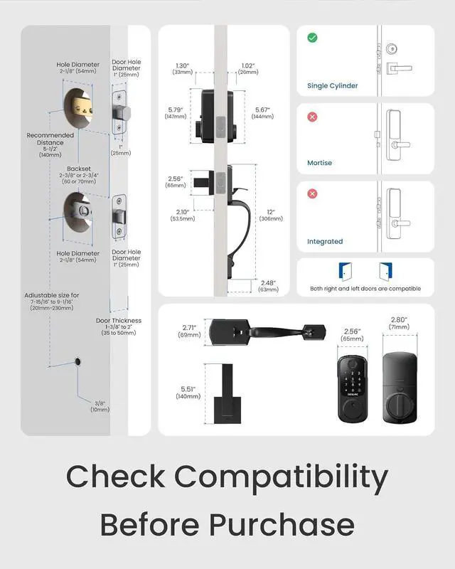 : IP54 waterproof, auto-lock, privacy mode, anti-peeping user code protection, and a robust lock cylinder. Operating reliably in temperatures ranging from -22 to 158 (-30 to 70).