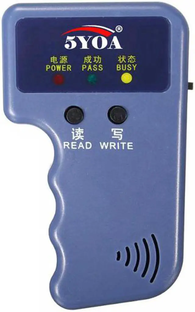 Copy: After successful read, put the blank card in the induction area and hold the copy key (right one), the buzzer sound emitted by bit, yellow light on, indicating that the copy --- successful. If there is no reflection but only the power light is blinking, the copy fails.