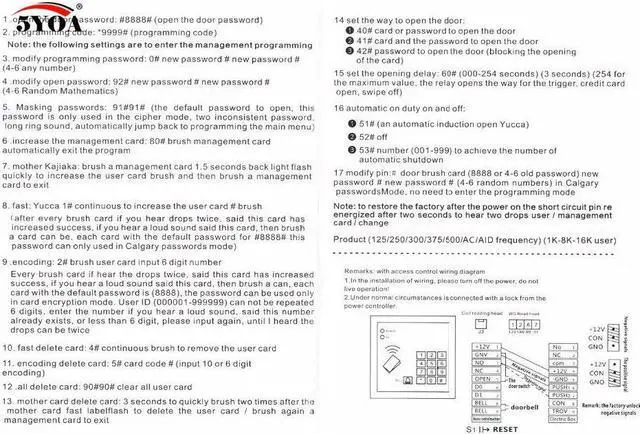 RFID Card Capacity: 500 cards, a "Personal PIN" goes alone with each card