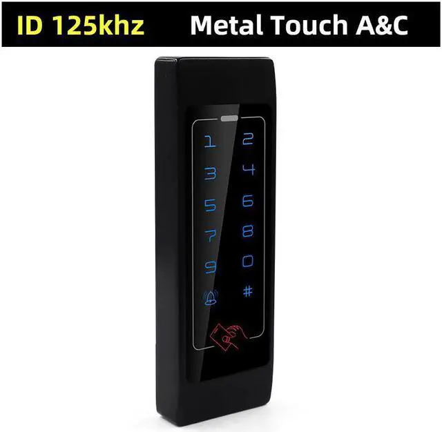 RFID Metal Touch Access Control Product: ID/IC Metal Access Control Card type: ID 125khz, IC 13.56 mhz optional User Capicity: 4000 users Working Voltage: DC12V Working Current: