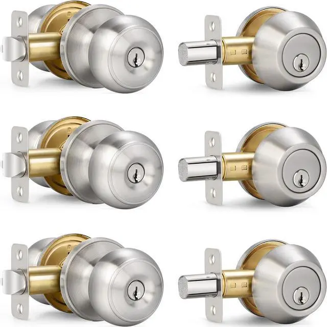 PREMIUM QUALITY: Heavy-duty door knob is made of premium quality stainless steel to guarantee rust-free in a high humidity environment. Conformed with ANSI Grade 3 Exceeds 200, 000 cyles and 5 pins brass tumbler cylinder; Solid Column security bolt for anti-sawing protection.