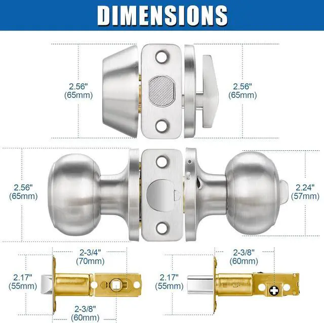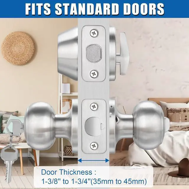 ONE SIZE FITS MOST: This round door knob lockset fits 1-3/8" to 1-3/4" doors. Use it for your front door entry, backdoor, bedroom door, or wherever you see fit.