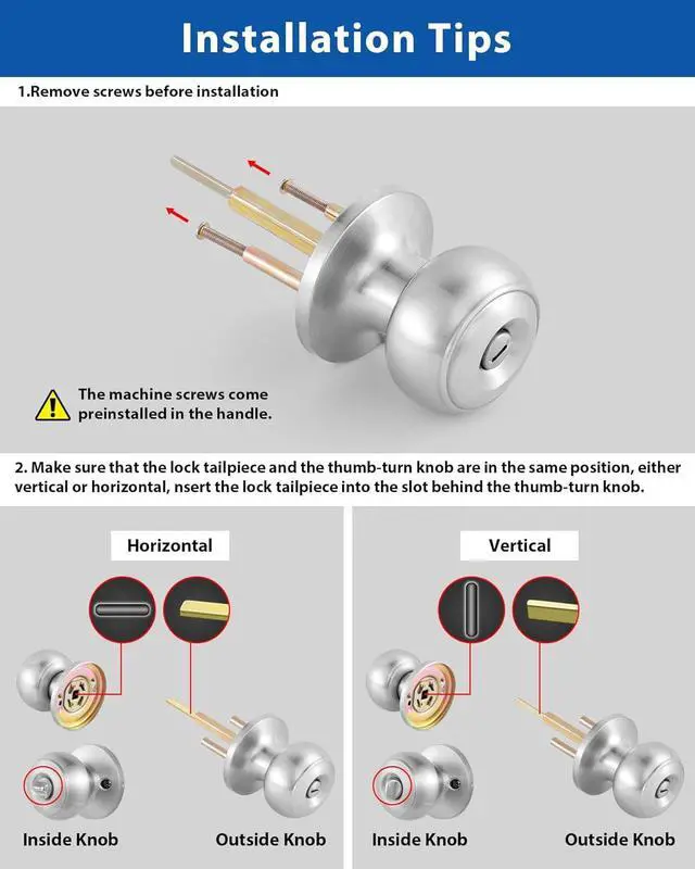 Fit standard door thickness: 1-3/8" to 1-3/4" (35mm- 45mm); SCRATCH RESISTANCE screwdriver, instruction and necessary fitting components included