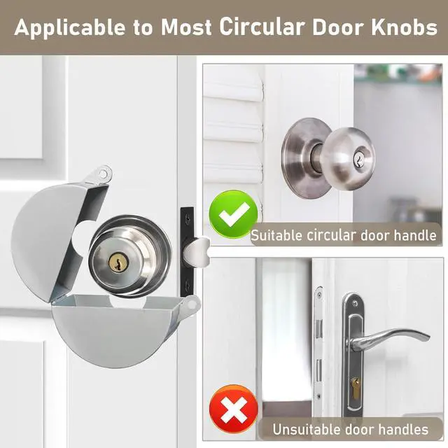 Wide Range UsesOur door knob lock out device is durable and suitable for most round door knobs, not for lever door handles. It prevents unauthorized room entry, improving the security and privacy of your home. Also prevents water theft and unauthorized tap use