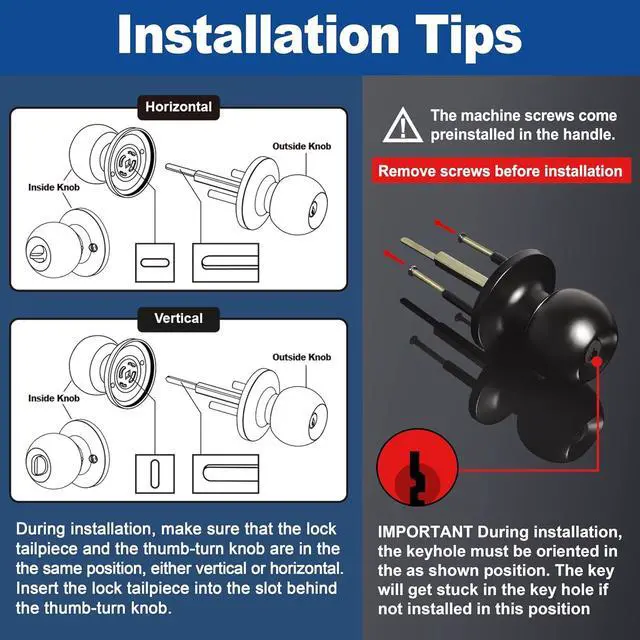 Reminder: The machine screws come preinstalled in the handle. Please remove them before installation