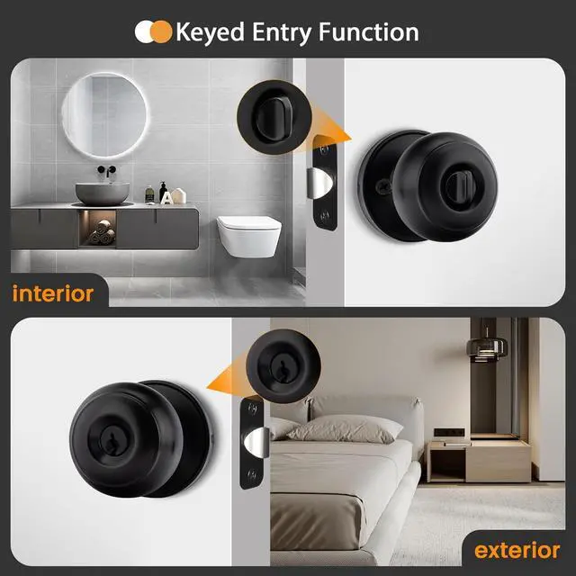 ENTRY FUNCTION - The keyed entry door knobs are ideal for rooms where locked is needed, such as interior and enterior doors. Locks from the inside with a turn button and unlocks from the outside with the keyed-alike keys