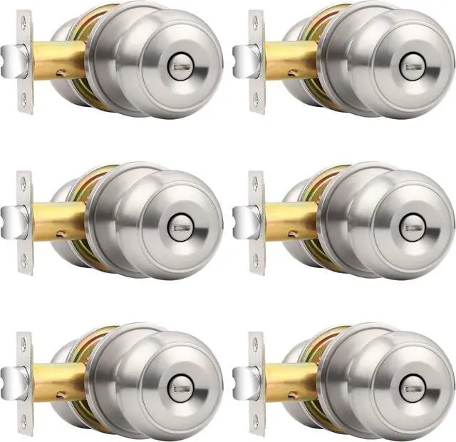 6 Pack per package (for 6 doors): privacy door knobs with modern nickel finish for bathroom or bedroom door. Confirm with ANSI Grade 3, Exceeds 200, 000 cycles.