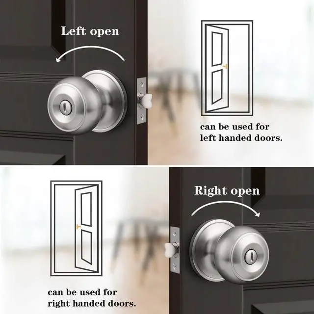 Privacy Function (without keys): The latch bolt can be locked by thumb turn button on the inside knob. An emergency release tool can unlock the door from the outside