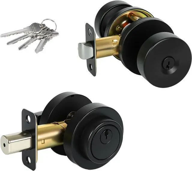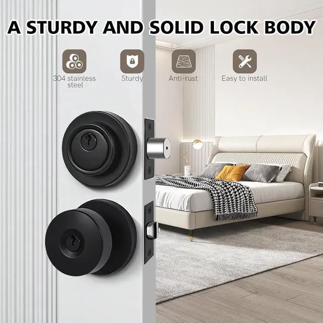 Keyed alike entry door knobs and deadbolt lock set, entry door locksets with same key, single cylinder deadbolt; Made from Stainless Steel and Copper.