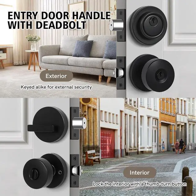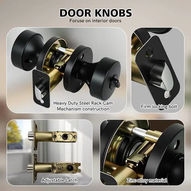 ANSI Grade-3 Security Door Knob, Adjustable latch 2-3/8" or 2-3/4" (60mm-70mm); Fit all doors 1-3/8 to 1-3/4 in thickness.