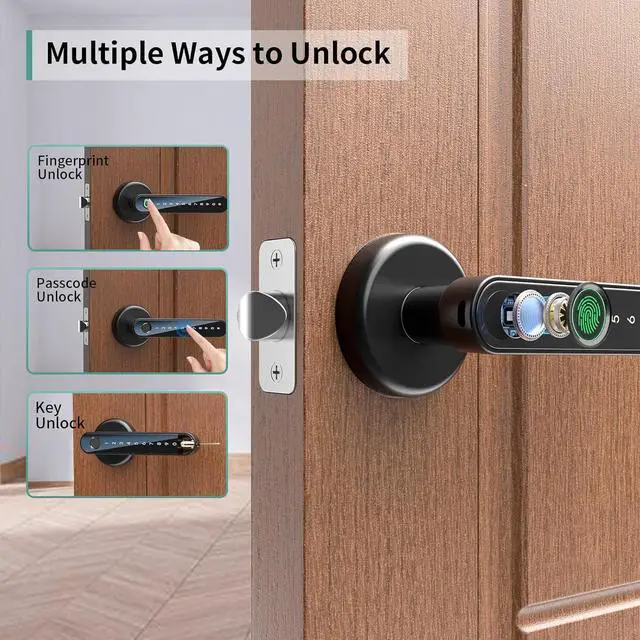 Security: Fingerprint door lock offers 3 unlocking methods: fingerprint password and physical key. With a fingerprint recognition rate of up to 98%, it can open the door in just 1 second. You can add up to 50 fingerprint groups, eliminating the hassle offorgetting your keys