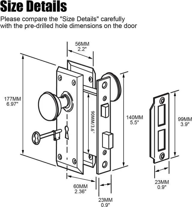 This mortise style door lock set can be used as a privacy lock for bedrooms, bathrooms and other interior doors. Can be unlocked with key from the inside and outside