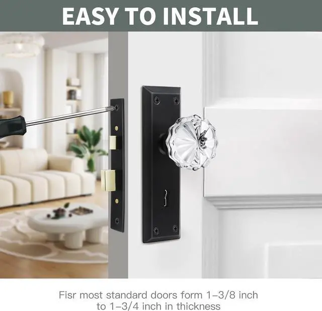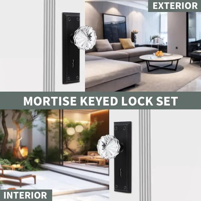 High Quality & Beautiful Premium gorgeous crystal glass knob and beautiful classic black finish, heavy duty and durable for last using. This matte black mortise door knob is a great choice for your next project