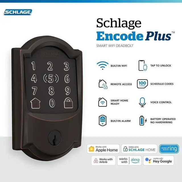 ANYWHERE ACCESS: With built-in WiFi compatibility, you can easily and securely connect your Schlage Encode Plus lock to your home WiFi network to control and monitor your home from anywhere with the Schlage Home app