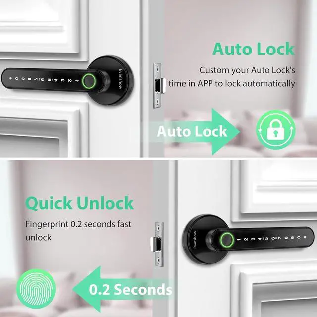 Fingerprint Door Knob & Advanced Biometric: The thumbprint door knob uses advanced biometric tech for 0.5 -second unlocks; No fumbling with keysperfect as door locks for front door