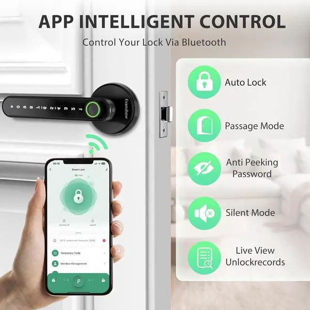 Advanced App Management: Seamlessly manage your deadbolt lock via the app: assign permanent/temporary access for family, guests, or deliveries, track entry logs, and enable silent mode for privacy