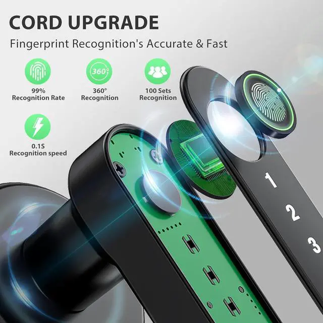 Easy Installation: No drilling/wiring! Our fingerprint door handle fits 1.18 " - 1.97 " thick wooden doors (left/right swing); fingerprint doorknob installs in minutes without professional help