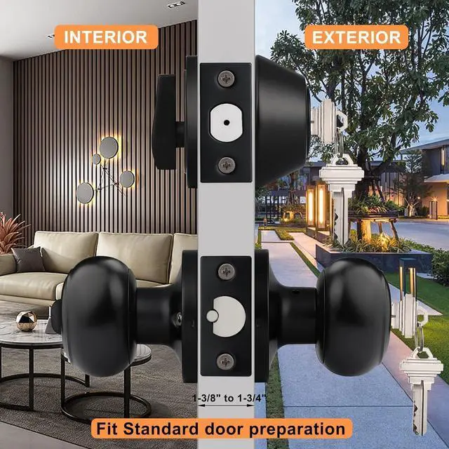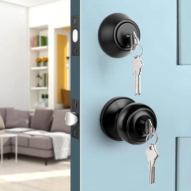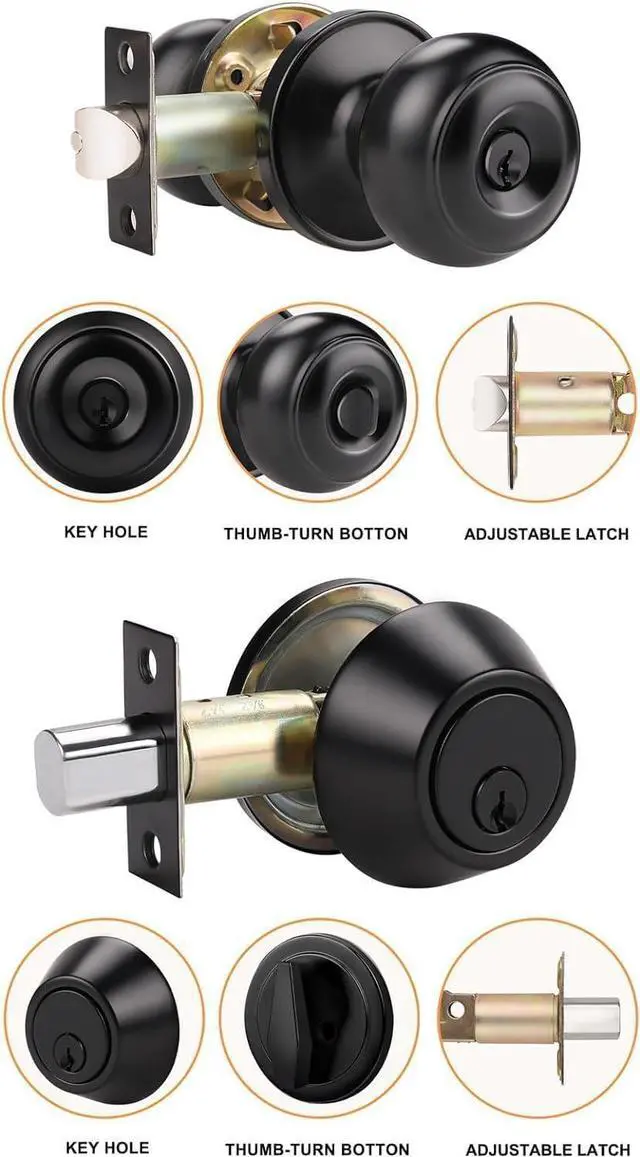 Combo Set: 1 set includes 1 entry knob and 1 deadbolt, which works best for exterior and interior doors, can be locked and opened with a key from the outside and a thumb-turn button from within. 1 set with 6 same keys