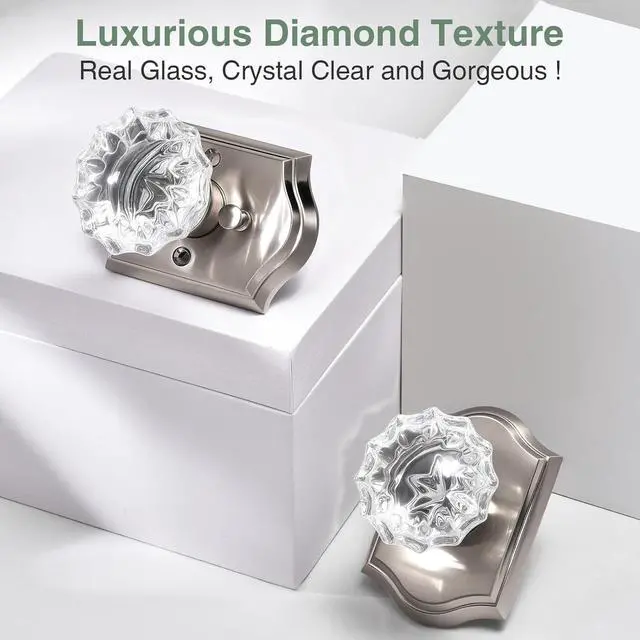 Optimization & Upgrade: Using a new structure, our glass door knobs with lock perfectly solve the pain point of the same crystal door knobs falling off in the market, which makes the crystal lock not only very beautiful and gorgeous, and no worries, durable, is your best choice