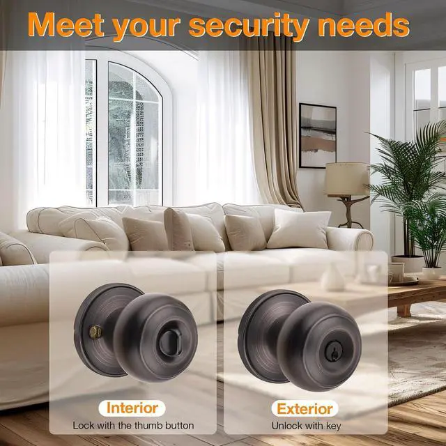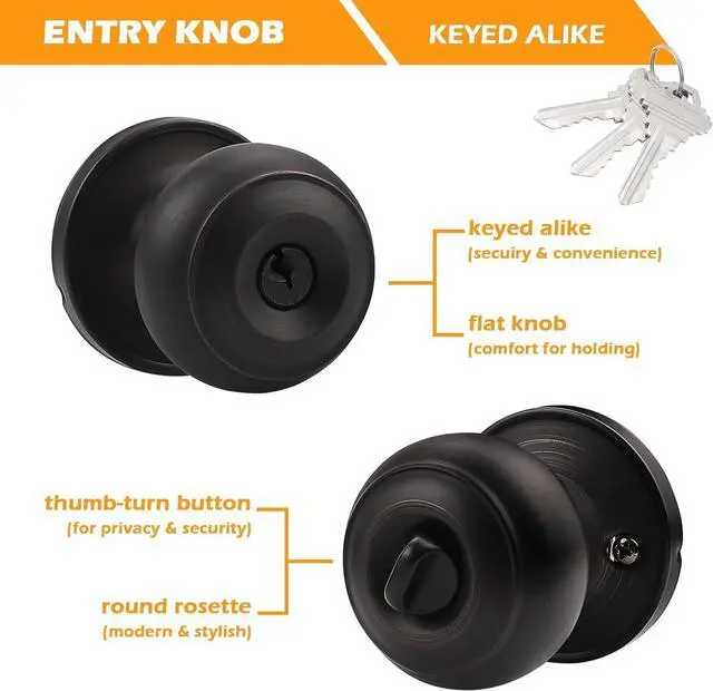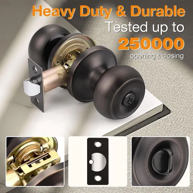 Material&StyleThe outside door knob is made from high-qualified stainless steel, firm, heavy duty, anti rust. Flat Ball style door knob. Oil Rubbed Bronze door knob