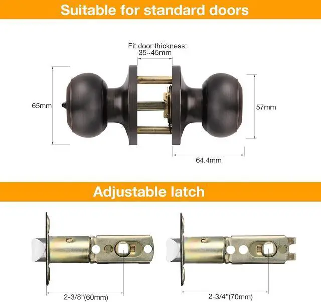 For all standard doorUniversal Latch 2-3/8" or 2-3/4", Fit door in thickness 1-3/8 inch to 1-3/4 inch. Easy Replacement Installation with Phillips Screwdriver. The door lock fit for right-handed and left-handed doors