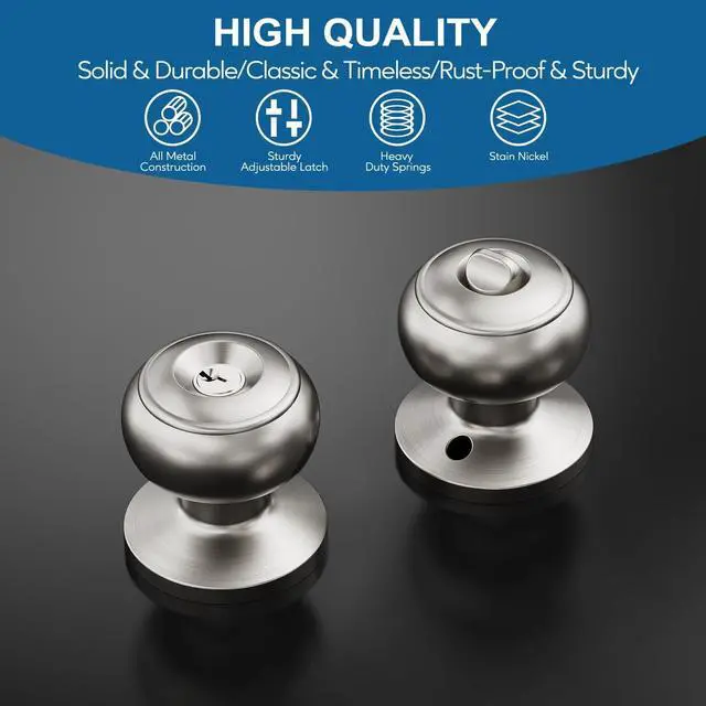 Security and Durability: Confirm with ANSI Grade 3, Exceeds 200, 000 cycles. Satin stainless steel knobs, high quality, durable, and resist corrosion, all metal features adds strength, security and durability
