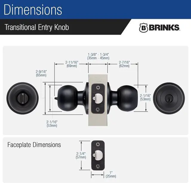 BRINKS QUALITY: As a leader in security-related products, this BRINKS door knob with key provides safety and trust, offering a durable lock door knob solution for home protection needs