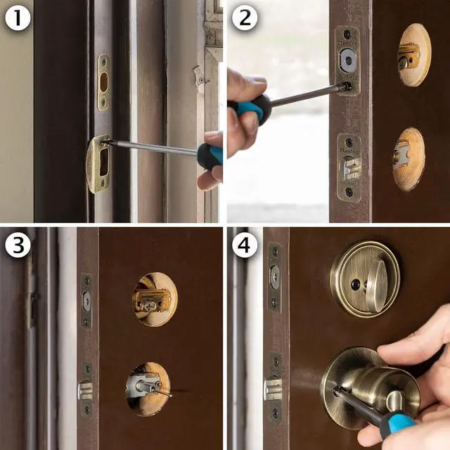 drive-in; deadbolt: four-way adjustable, fits 2-3/8 in. Or 2-3/4 in. Backset, square, or rounded corners