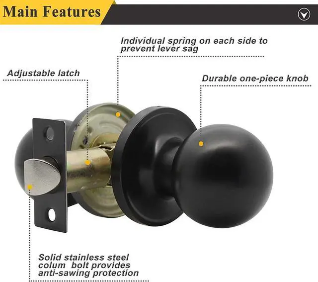 [Multi-Usage] Each package contains 8 knobs (for 8 doors). Keyless passage door knob with latching capabilities can make door closed without locking. The privacy knob is ideal for interior door such as closet, hallway, pantry