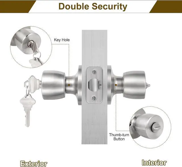 Modern Design Feature a perfect satin nickel finish, our locking door knob for bedroom provides a simple yet stylish touch to your home or commercial area.