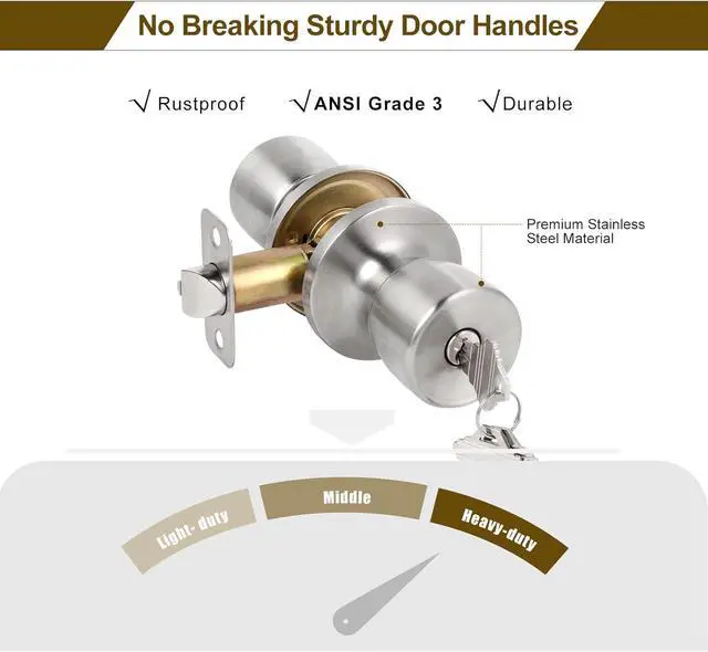 Premium Material Crafted from heavy-duty and rustproof stainless steel and boasting ANSI Grade 3 certification, this exterior door knob is built to last, being the ultimate choice for those who value durability.